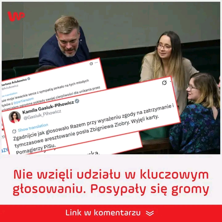 Wieczorem politycy koalicji rządzącej zwrócili uwagę na fakt, że wszyscy posłowie koła Razem uczestniczyli w głosowaniu o zatrzymaniu i aresztowaniu Ziobry. Europosłanka KO Kamila Gasiuk-Pihowicz skrytykowała ten krok, nazywając go: “Pomagierzy PiS-u”.