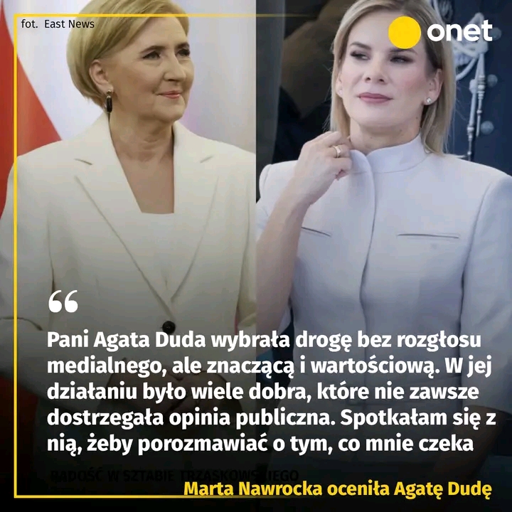 Marta Nawrocka od początku prezydentury Karola Nawrockiego stara się być widoczna. Nie tylko bierze udział w uroczystościach, ale powołała do życia fundację walczącą z hejtem i udzieliła już kilku wywiadów, w tym jednego okładkowego dla magazynu “Viva”. W rozmowie zaznaczyła, że nie chce być porównywana do swojej poprzedniczki, Agaty Dudy. “Pani Agata Duda wybrała drogę bez rozgłosu medialnego”. Opowiedziała również o spotkaniu z byłą pierwszą damą.