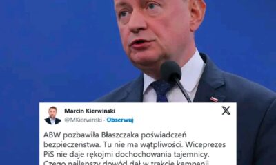 Agencja Bezpieczeństwa Wewnętrznego pozbawiła posła Prawa i Sprawiedliwości Mariusza Błaszczaka poświadczeń bezpieczeństwa — poinformował szef MSWiA Marcin Kierwiński. Polityk Zjednoczonej Prawicy skomentował działania ABW, mówiąc o...