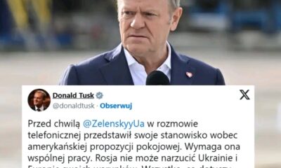 Donald Tusk poinformował na portalu X o swojej rozmowie z prezydentem Ukrainy. “Wołodymyr Zełenski w rozmowie telefonicznej przedstawił swoje stanowisko wobec amerykańskiej propozycji pokojowej. Wymaga ona...