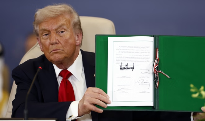 Pokojowy plan dla Strefy Gazy został podpisany w poniedziałek przez prezydenta USA Donalda Trumpa, prezydenta Egiptu Abdela Fataha el-Sisiego oraz prezydenta Turcji Recepa Tayyipa Erdogana. Uroczyste podpisanie miało miejsce w Szarm el-Szejk w Egipcie.