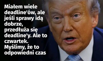 — Miałem wiele deadline’ów, ale jeśli sprawy idą dobrze, przedłuża się deadline’y. Ale to czwartek. Myślimy, że to odpowiedni czas — powiedział Donald Trump na antenie...