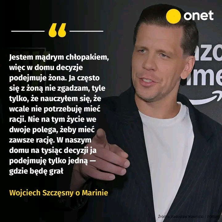 — Jestem mądrym chłopakiem, więc w domu decyzje podejmuje żona. Ja często się z żoną nie zgadzam, tyle tylko, że nauczyłem się, że wcale nie potrzebuję mieć racji. Nie na tym życie we dwoje polega, żeby mieć zawsze rację. W naszym domu na tysiąc decyzji ja podejmuję tylko jedną — gdzie będę grał — przyznaje Wojciech Szczęsny na łamach “GQ”.